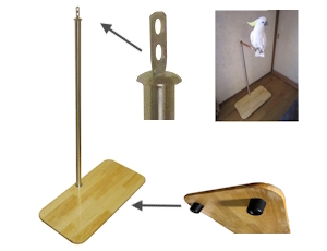 | えぽタワー 室内放鳥用の止まり木です。ステンレスパイプの柱に片持ち式の止まり木を取り付けられます。底部には防音ゴムの足が4つ付いています。どなたでも簡単に組み立てられるように設計しました。 ステンレスパイプ:Φ25mmx900mm 底板:600mmx300mmx15mm |